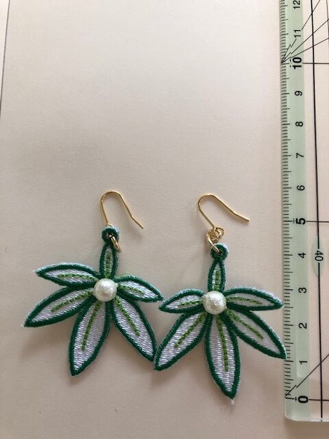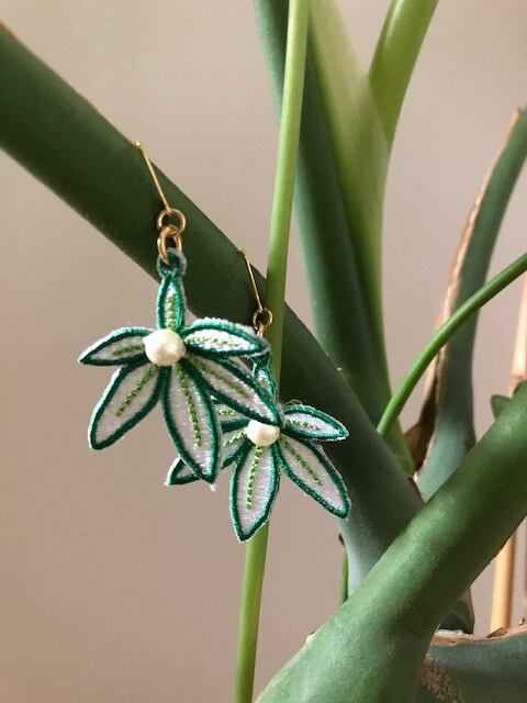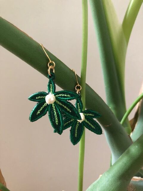 観葉植物のパキラをモチーフに ワッペン素材のピアス タテ4.0㎝(金具下)×ヨコ3.7㎝ ※イヤリング金具に変更可能 ※円ワイヤーに変更可能