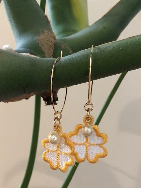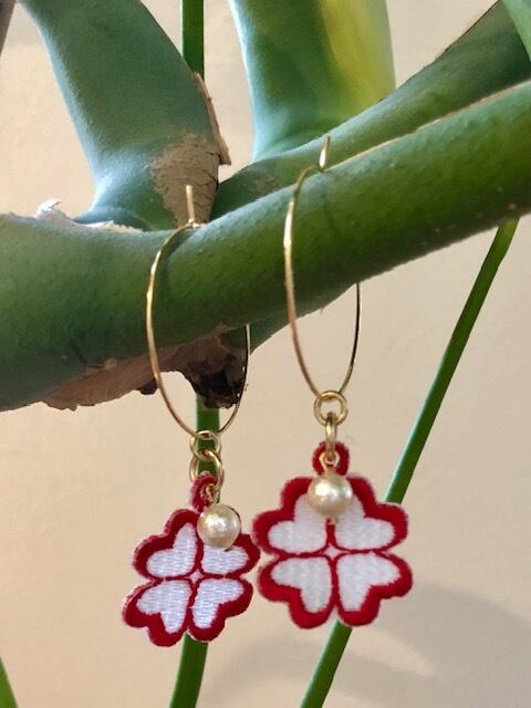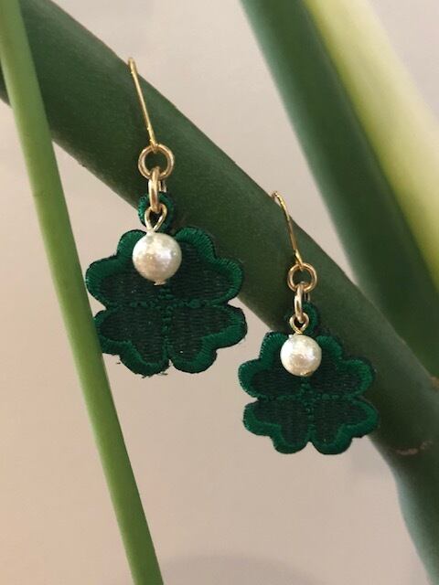 四葉のクローバーをモチーフに ワッペン素材のピアス タテ約2.5㎝(金具下)×ヨコ約2.2㎝ ※イヤリング金具に変更可能 ※円ワイヤーに変更可能