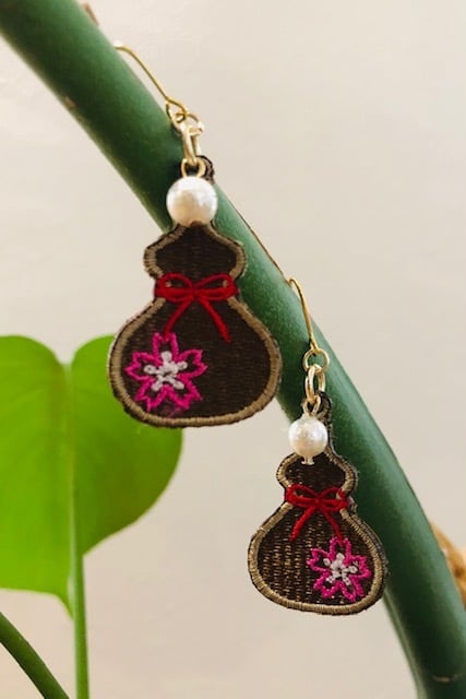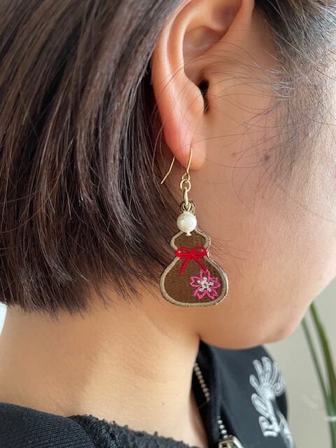 瓢箪をモチーフに ワッペン素材のピアス タテ3.5㎝(金具下)×ヨコ2.5㎝ ※イヤリング金具に変更可能 ※円ワイヤーに変更可能