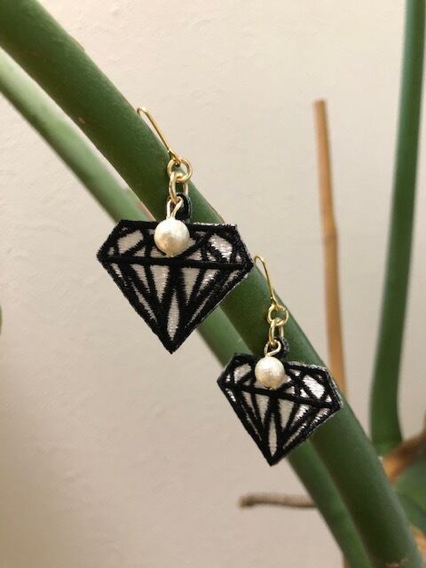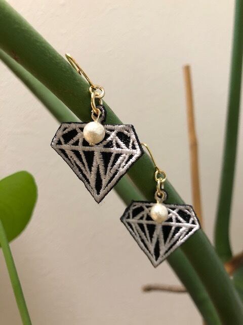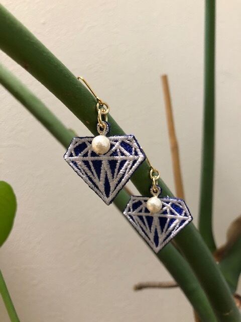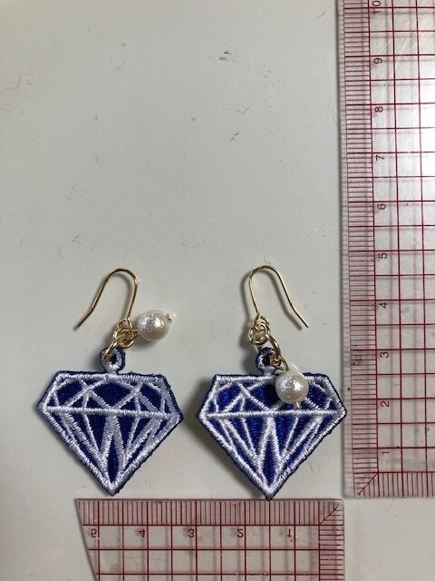 ダイヤモンドをモチーフに ワッペン素材のピアス タテ3.0㎝(金具下)×ヨコ23.0㎝ ※イヤリング金具に変更可能 ※円ワイヤーに変更可能