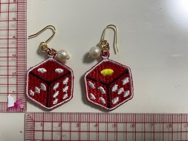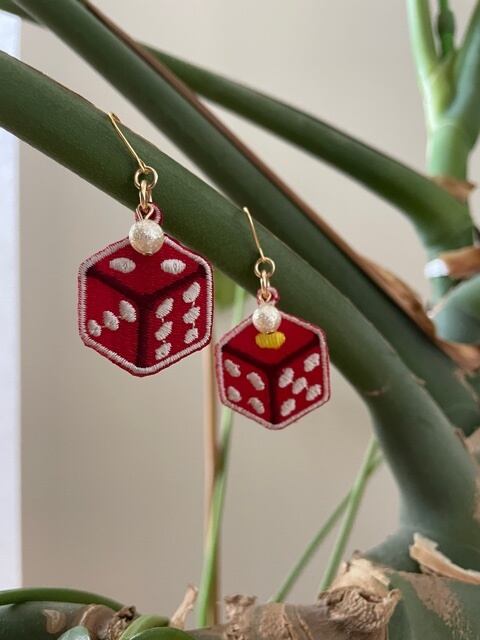 サイコロをモチーフに ワッペン素材のピアス タテ3.0㎝(金具下)×ヨコ2.5㎝ ※イヤリング金具に変更可能 ※円ワイヤーに変更可能